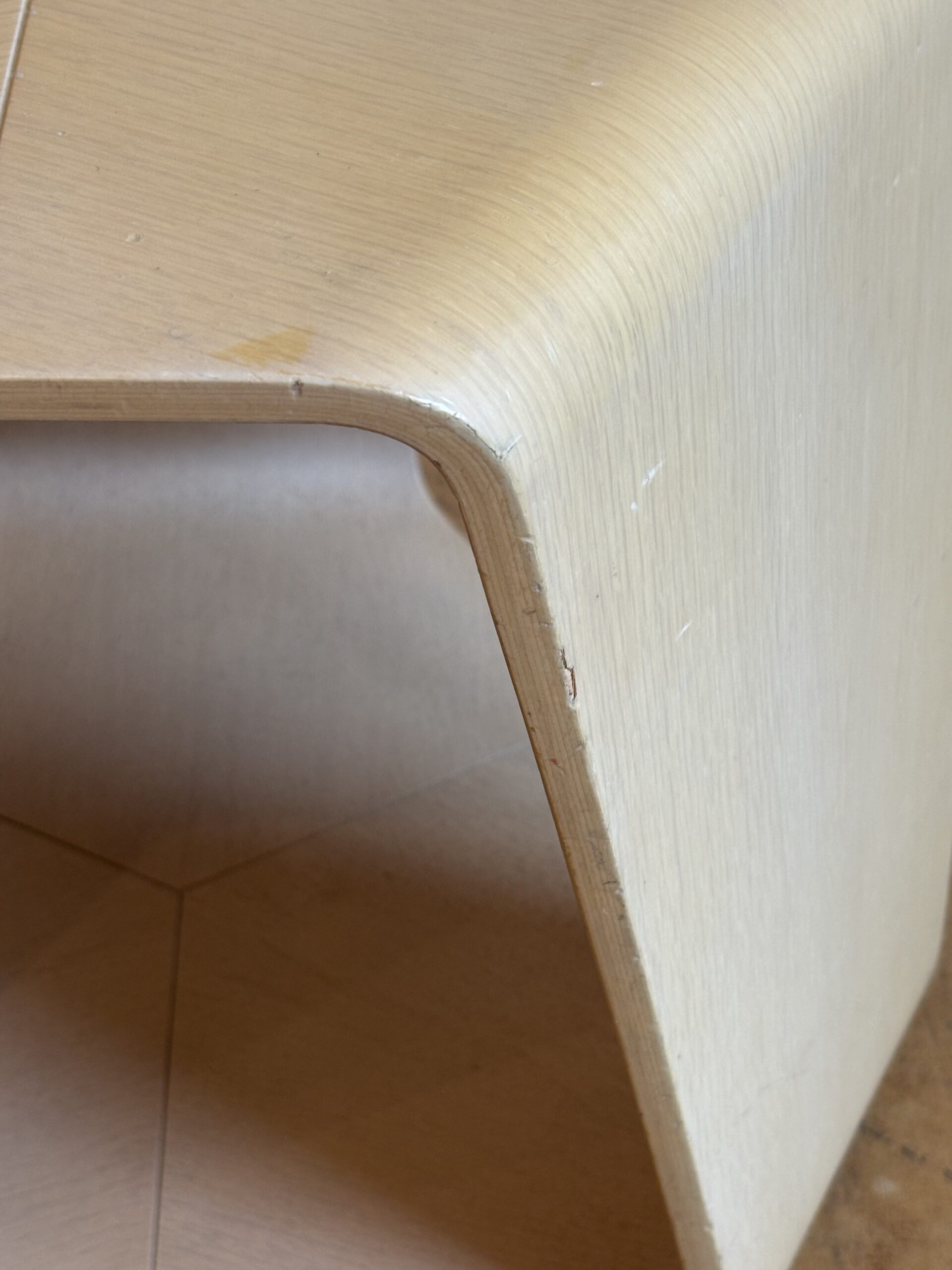 現在は本来の意匠を守る為にチーク材の仕様しか製造出来なくなりましたが、こちらのムライスツールは以前にオーダーが出来た時代の、ナラ材仕様の特注品と思われます。