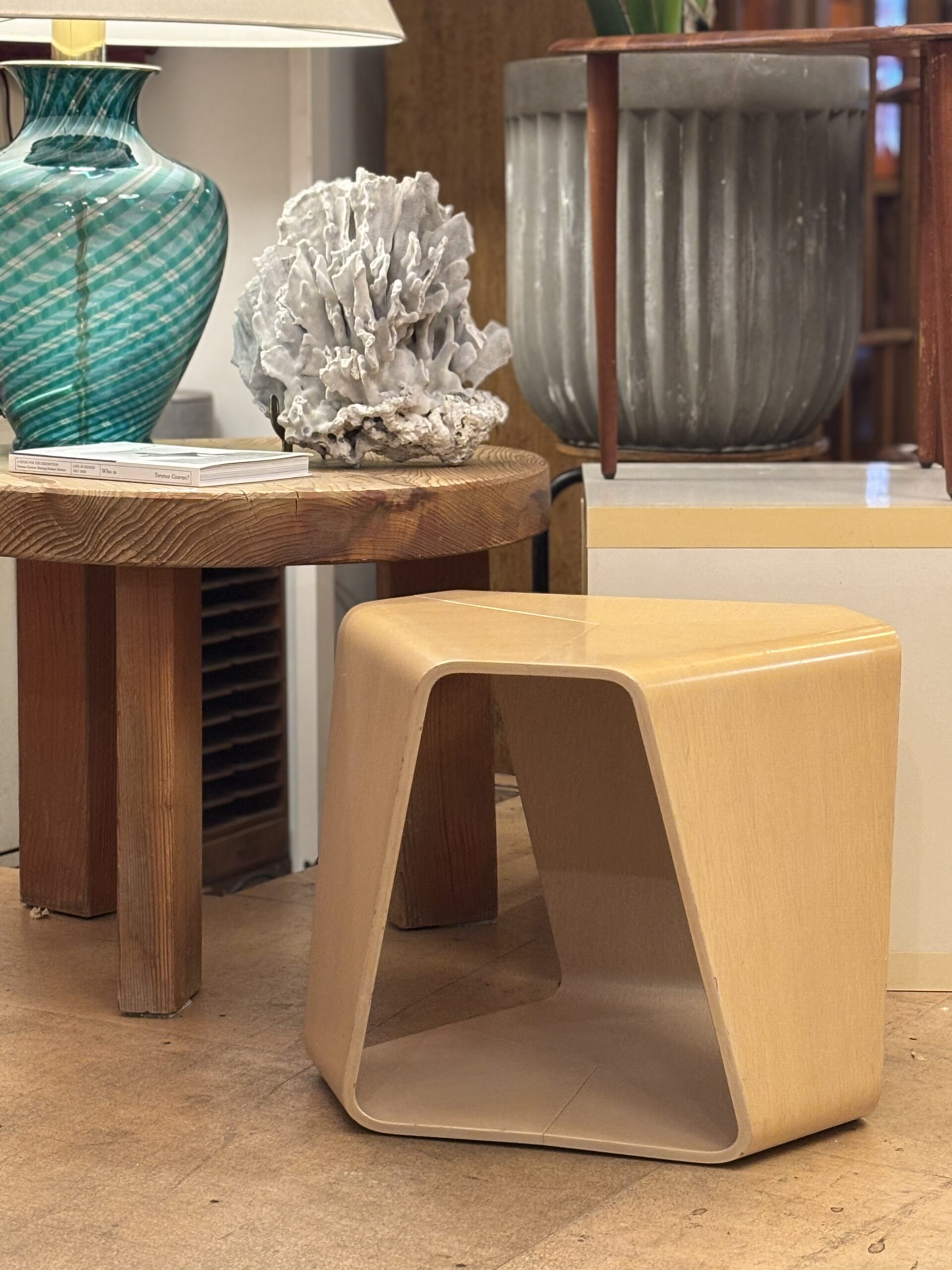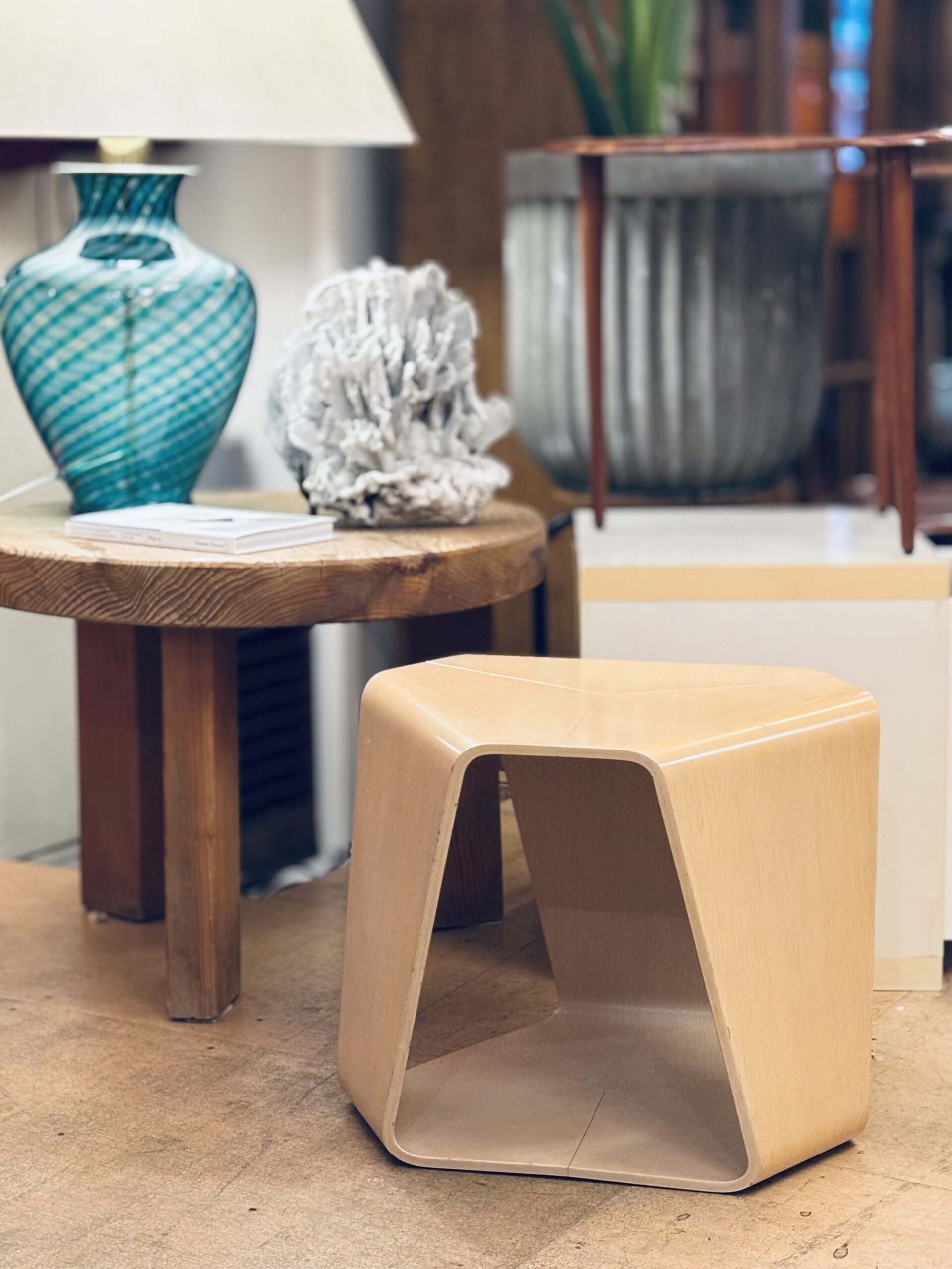 1961年に開催された「第1回天童木工家具コンクール」で佳作に入賞した、六角形のフォルムをしたスツール。「ムライ」とはデザイナーの田辺麗子の旧姓から名づけられています。ニューヨーク近代美術館(MoMA)のパーマネントコレクションに選ばれた名作です。